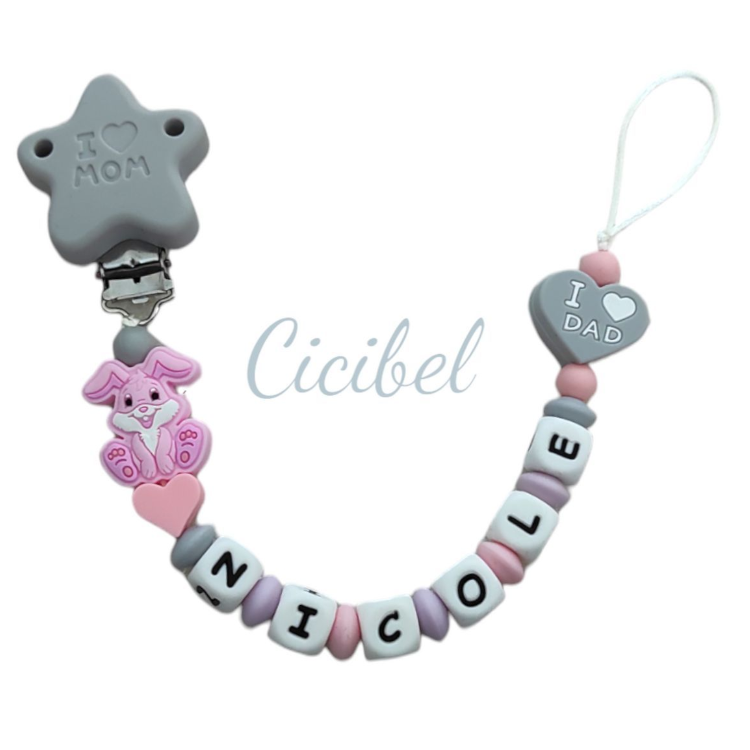 Catenella portaciuccio in silicone personalizzabile con nome (MASSIMO 10 LETTERE).