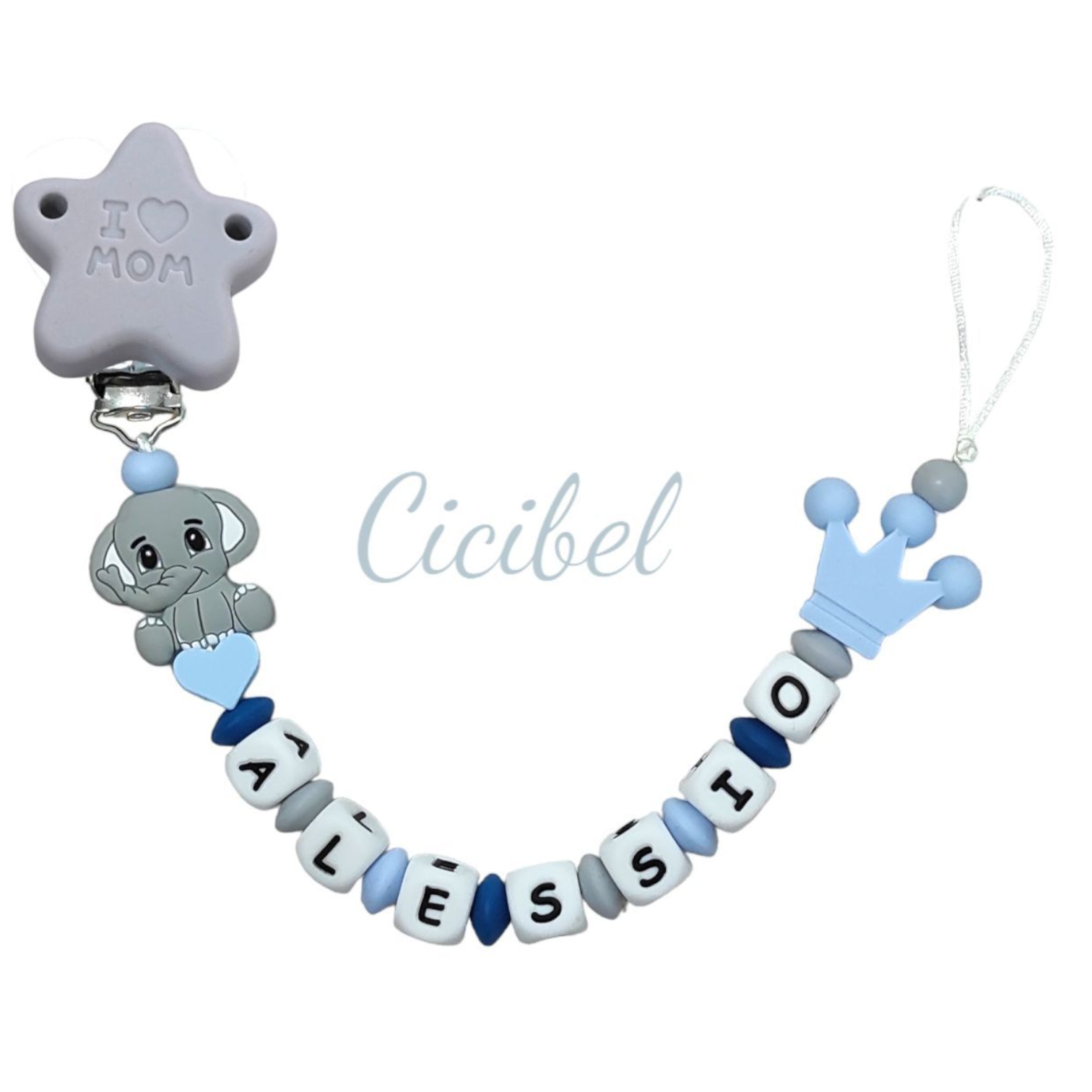 Catenella portaciuccio in silicone personalizzabile con nome (MASSIMO 10 LETTERE).
