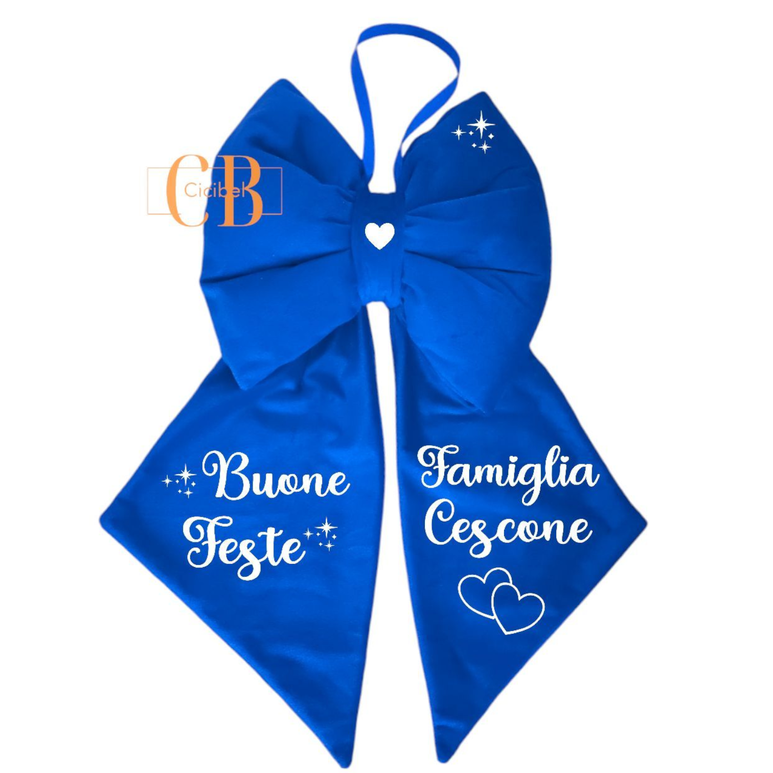 Fiocco fuoriporta realizzato artigianalmente nel nostro laboratorio, personalizzabile dedica + cognome famiglia.