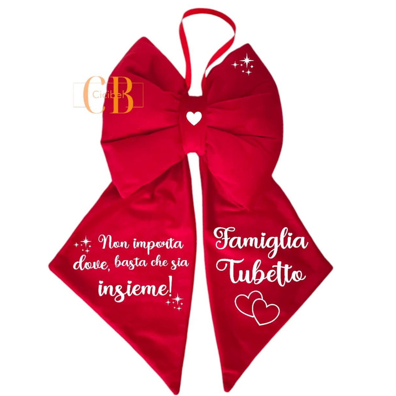 Fiocco fuoriporta realizzato artigianalmente nel nostro laboratorio, personalizzabile dedica + cognome famiglia.
