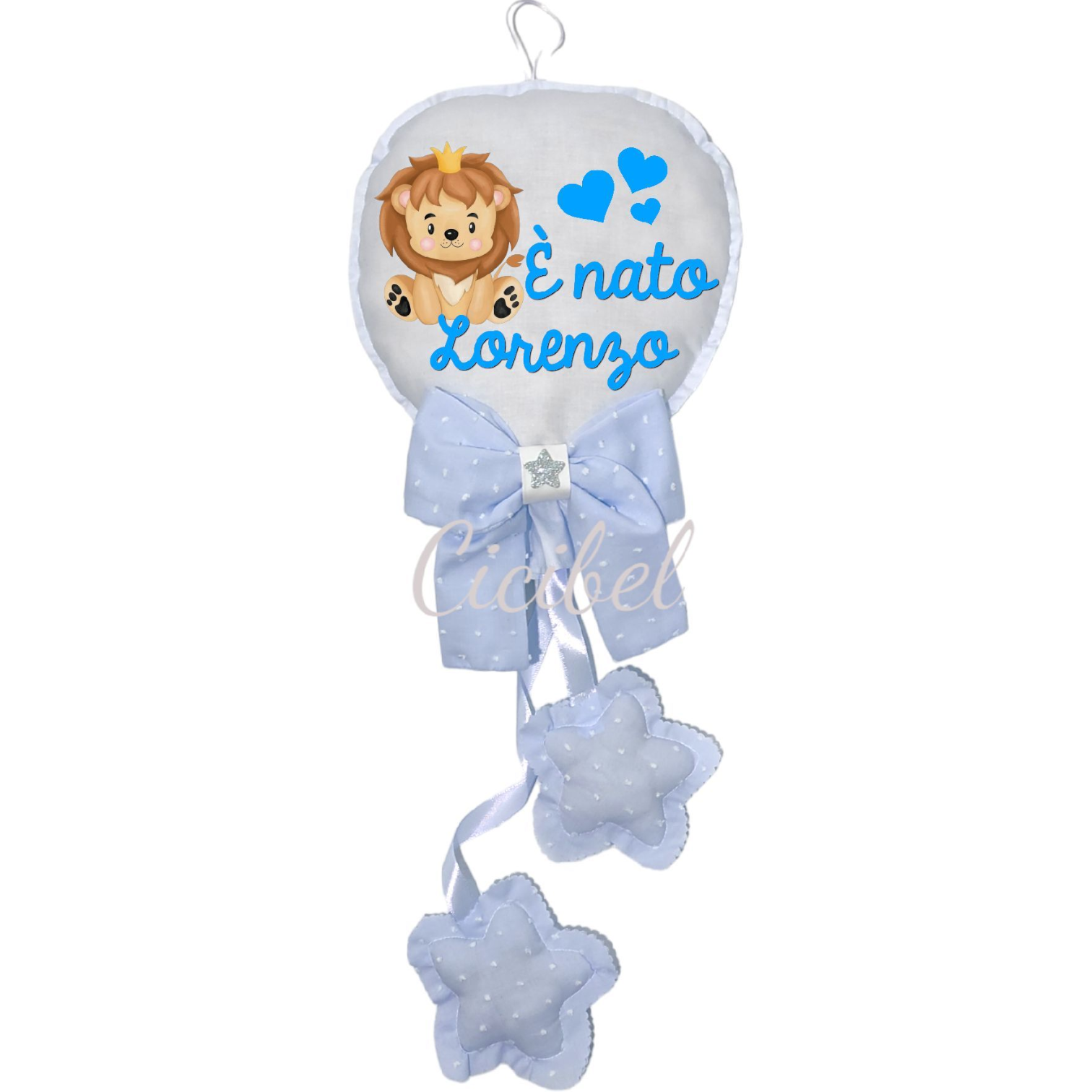 Annuncia in modo unico la nascita del tuo bebè con il fiocco nascita PALLONCINO. Personalizzabile con il nome del tuo bambino, realizzato artigianalmente nel nostro laboratorio italiano con 100% cotone.