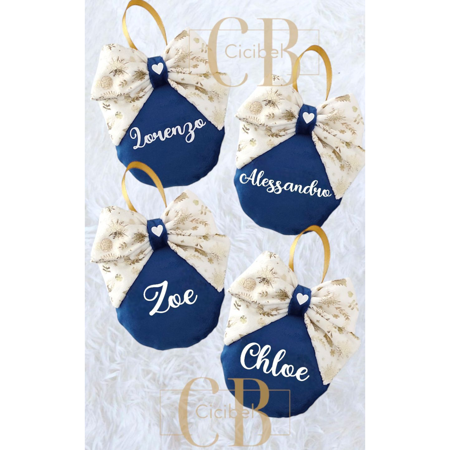 Pallina di natale in velluto realizzata artigianalmente nel nostro laboratorio, personalizzabile con nome.