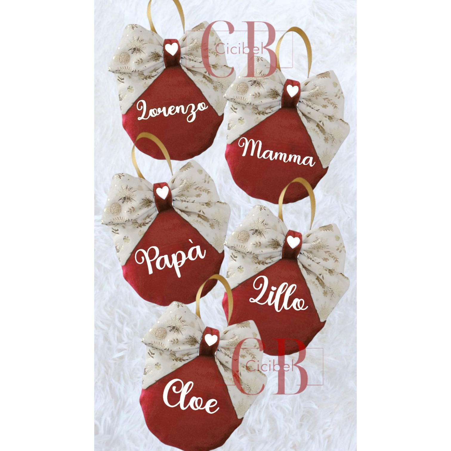 Pallina di natale in velluto realizzata artigianalmente nel nostro laboratorio, personalizzabile con nome.