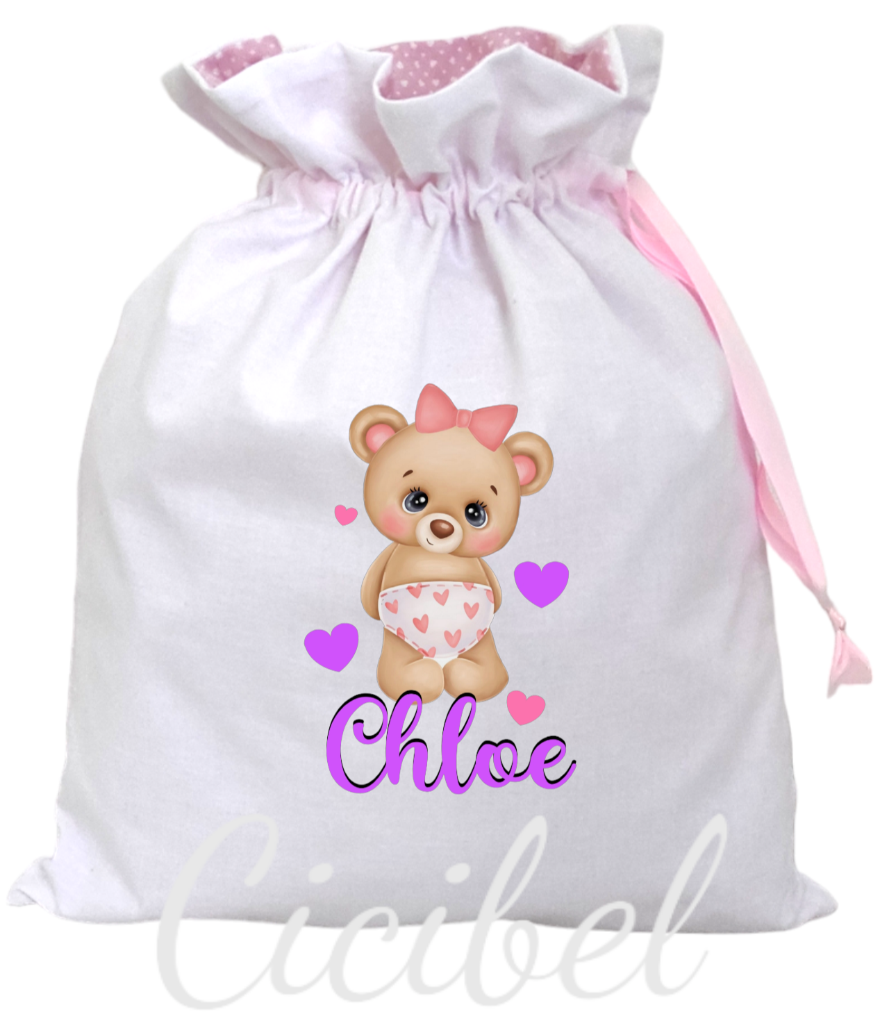 Sacchetto porta cambio foderato internamente, personalizzabile con nome. Realizzato artigianalmente nel nostro laboratorio(MADE IN ITALY).