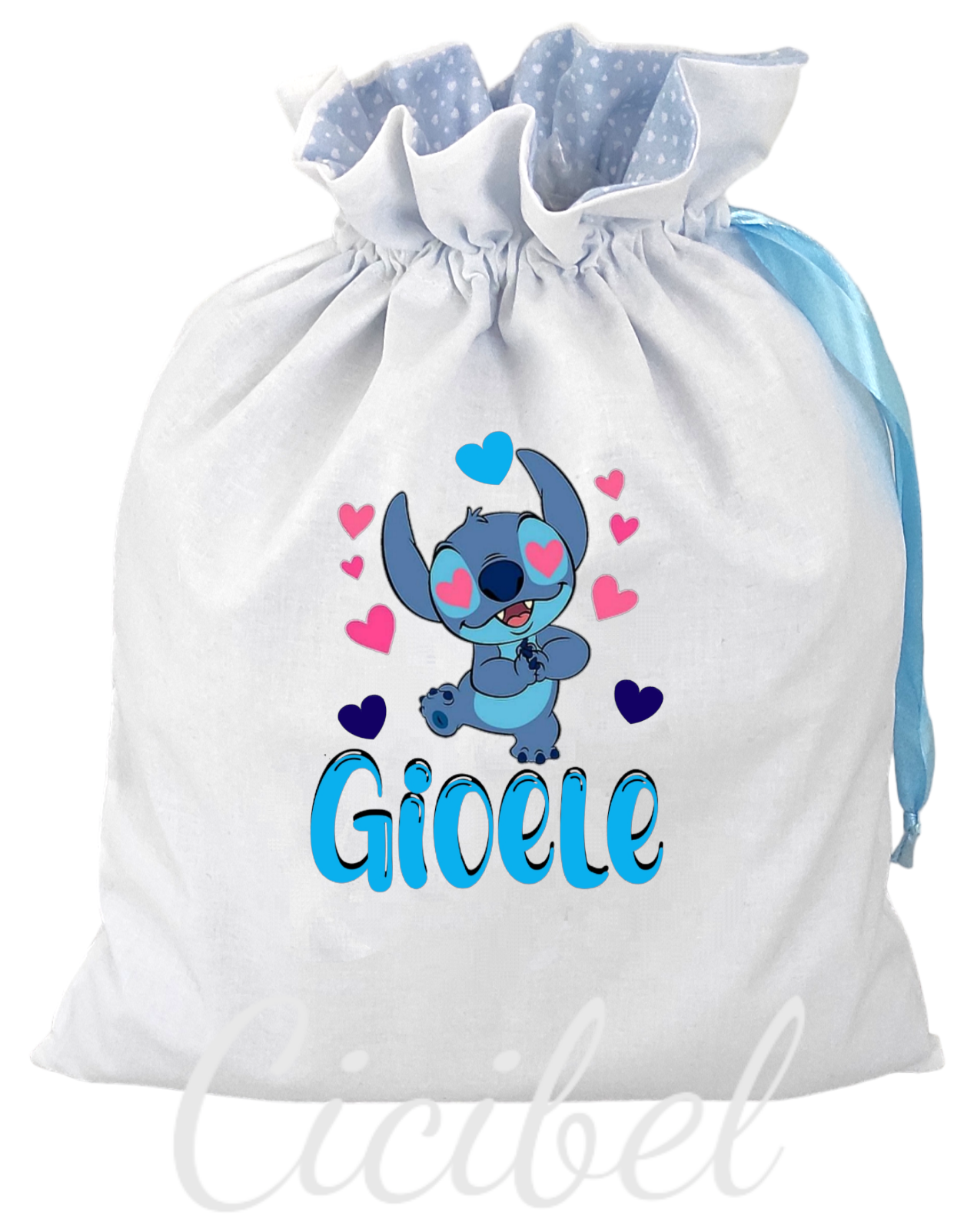 Sacchetto porta cambio foderato internamente, personalizzabile con nome. Realizzato artigianalmente nel nostro laboratorio(MADE IN ITALY).